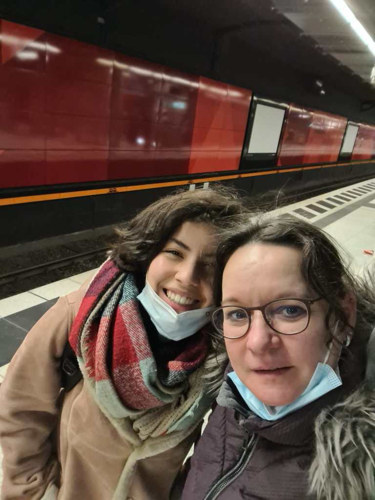 Jammer dat we die mondmaskers op moeten blijven houden. Per vandaag zijn alle corona-maatregelen in Nederland ervan af gegaan, behalve in het ov, daar moet je nog mondmaskers dragen. En we zijn nu natuurlijk in Duitsland en daar gelden alle maatregelen nog.